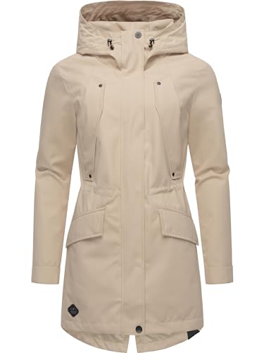 Ragwear Lätt övergångsparka för kvinnor, lång regnrock, vattentät och andas, med stor huva, begonia YoUMODO XS-6XL, sand, M