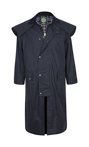 Portmann Stockman Unisex fodrad vaxad kappa av högsta kvalitet, lång regnrock, handgjord i Storbritannien, marinblå, L