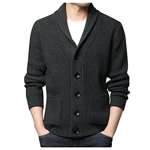 VaiKanhai tröja herr stickad herr – och vinter långärmad tröja stickad tröja kappa blus rock herr lång, Mörkgrå, XXL