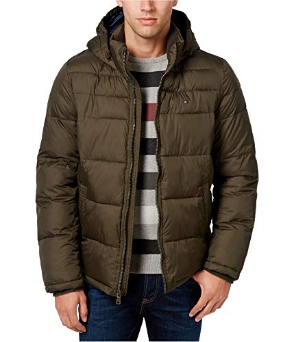 Tommy Hilfiger herr klassisk pufferjacka med huva (standard och stor och lång) dun alternativ ytterkläder rock, Oliv, XXL tall