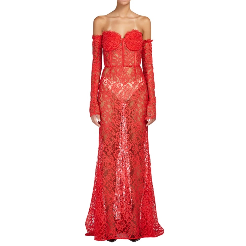 Lång röd klänning