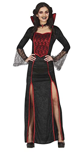 FIESTAS GUIRCA Gotisk vampyrdräkt - lång svart och röd klänning för vuxna kvinnor, storlek M 38–40