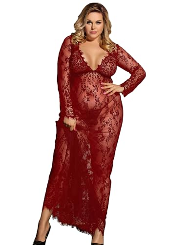 comeondear Sexiga underkläder för kvinnor nattkläder lång klänning spets babydoll underkläder smekmånad nattlinnen nattklänning med g-string plus size UK 8-22, Röd, 42-44