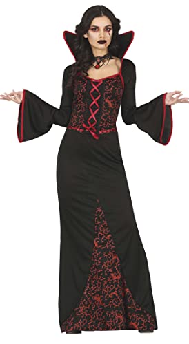 FIESTAS GUIRCA Gotisk vampyrdräkt - lång svart och röd klänning för vuxna kvinnor, storlek S 36–38