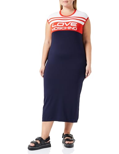 Love Moschino Kvinnors korta ärmar lång kemisk klänning, vit röd blå gul svart, 46