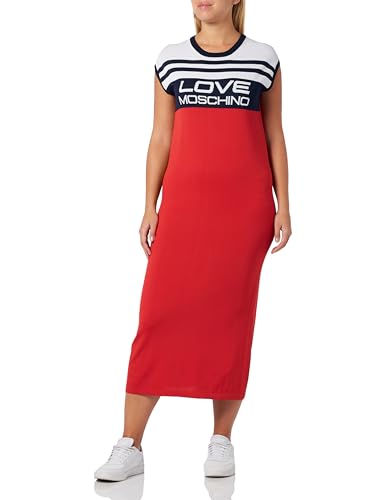 Love Moschino Långärmad lång klänning för kvinnor, röd blå vit, 42, Röd blå vit, 42
