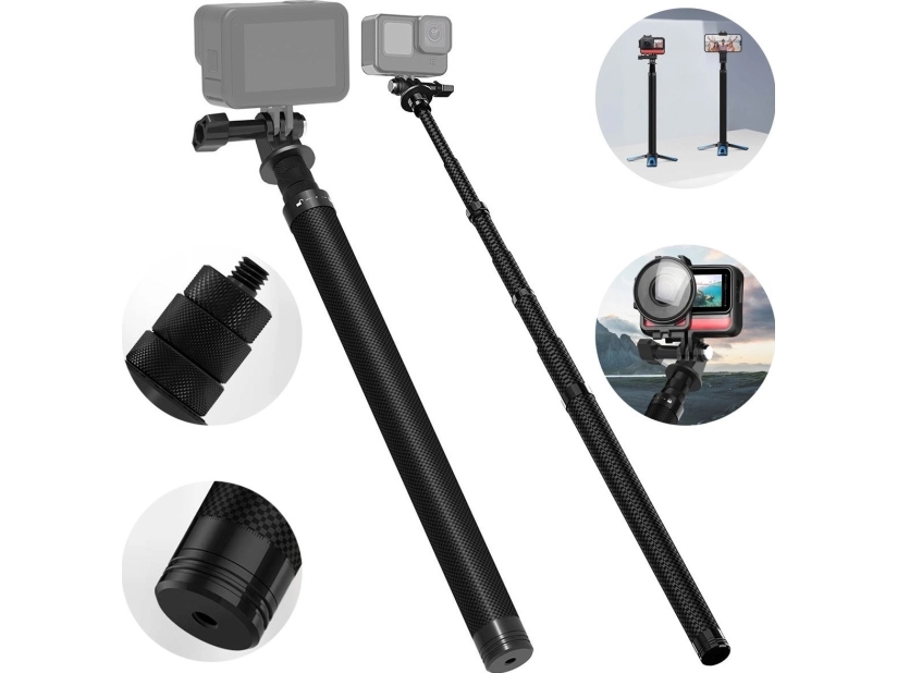 Telesin Selfiepinne I Kolfiber För Sportkameror, 1,16 M Lång