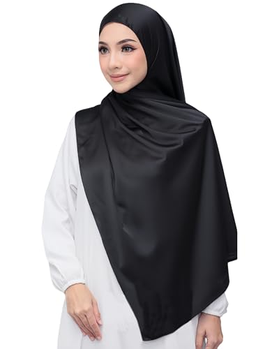 Lina & Lily Lyxig satäng hijab huvudscarf sjal för muslimska kvinnor extra lång, Svart, one size