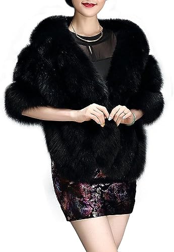 UMREN Dam lyx fest fuskpäls lång sjal kappa cape för vintern, A-svart, One Size