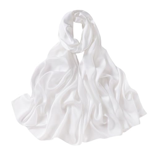Lina & Lily Lyxig satäng hijab huvudscarf sjal för muslimska kvinnor extra lång, Vitt, one size
