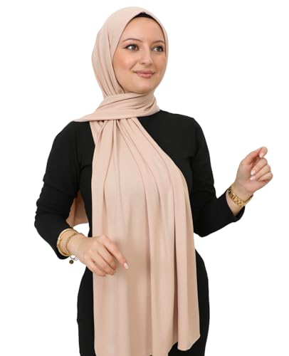 Prien Hijab för kvinnor, huvudduk av viskos, lätt muslimsk hijab, lång islamiska sjal i konstsiden., BEIgE, Standard