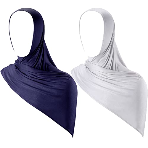 2 st Instant Hijab Jersey Hijab för kvinnor muslimsk huvudscarf lätt lång mjuk hijab sjal stretch enfärgad halsduk wrap, Marinblå, grå, about 66 x 31.5 inches