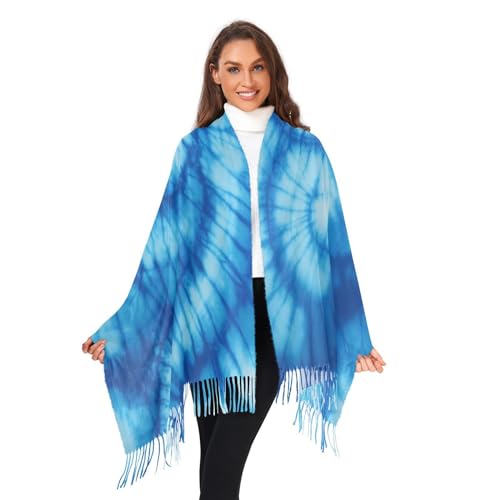 Scarves Blå batiktryck Sjalar Med Tofs Mode Sjal Dam Lång Sjal Sjalar Filt Sjalar