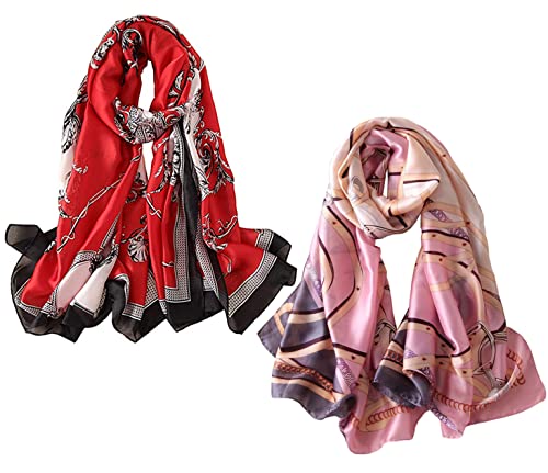 LumiSyne Sidenhalsduk dam blomma tryckt mode och elegant stil lång och mjuk sjal varm scarf solskydds stoles fyra årstider, Röd blommig, one size