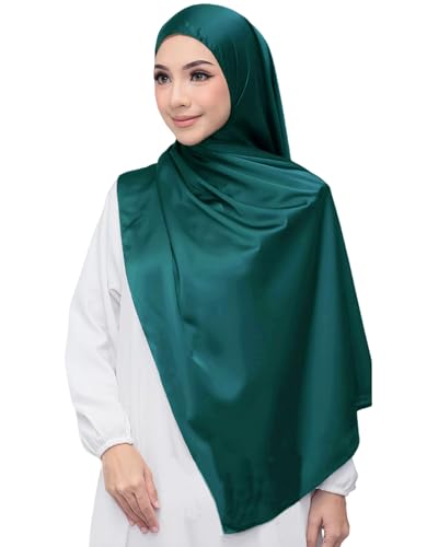 Lina & Lily Lyxig satäng hijab huvudscarf sjal för muslimska kvinnor extra lång, grön (Pine green), one size