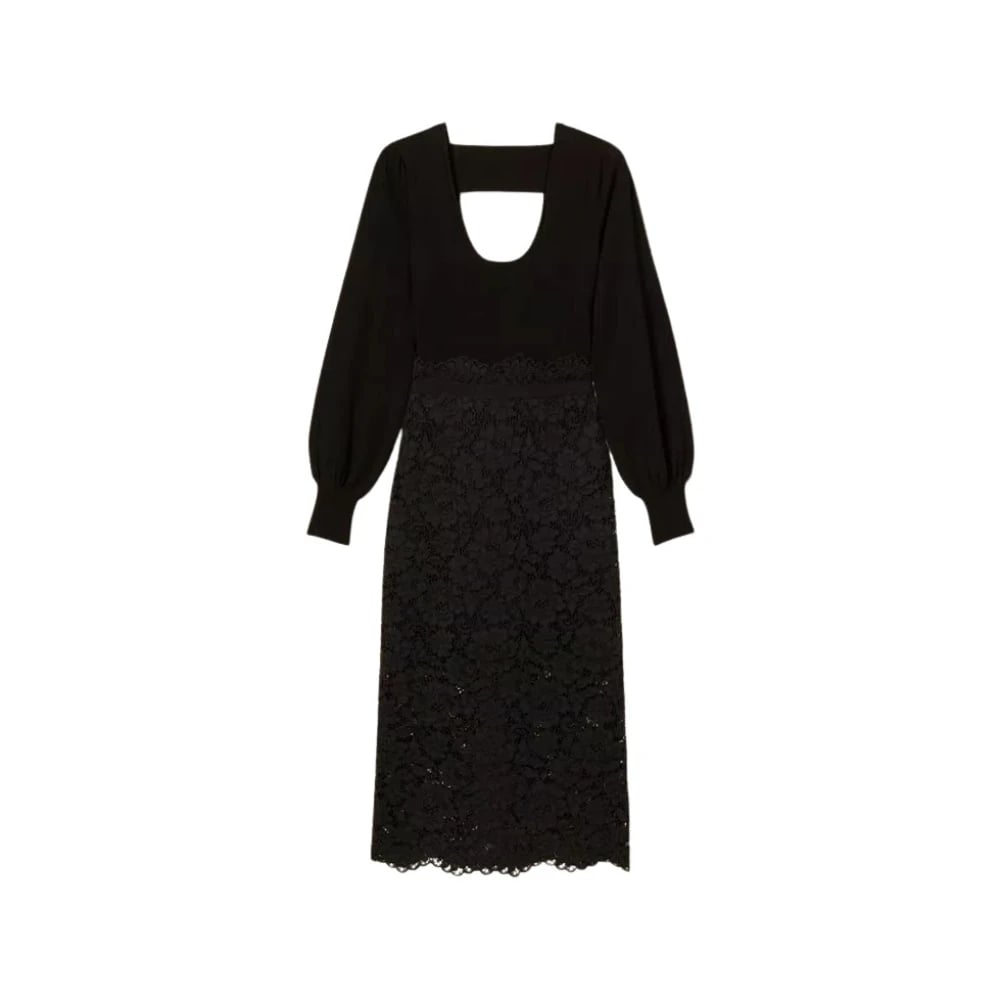 Twinset, Klänningar , Dam, XL, Bomull, Stickad och Spetsig Lång Klänning