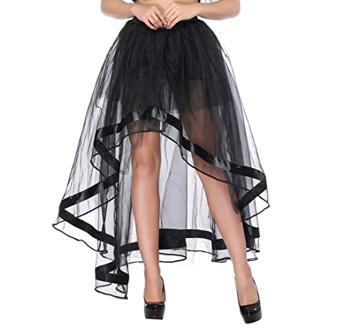 Zooma Kvinnor vintage ånga punk kjol kostym trosa underkjol svart mesh hög midja midi maxi lång kjol, Svart1, S