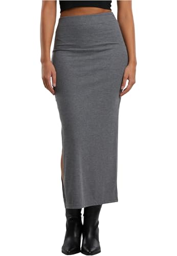 Urban Classics Damer Rib High Slit Skirt Dam Lång Kjol Svart, Sport grå, L