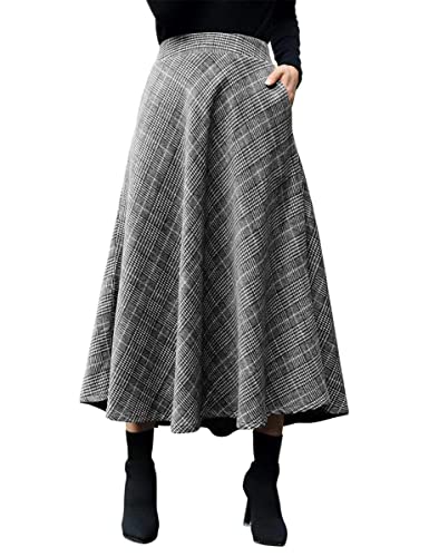 IDEALSANXUN Dam höst/vinter hög midja rutig smal A-linje lång kjol, Svart och vitt, M
