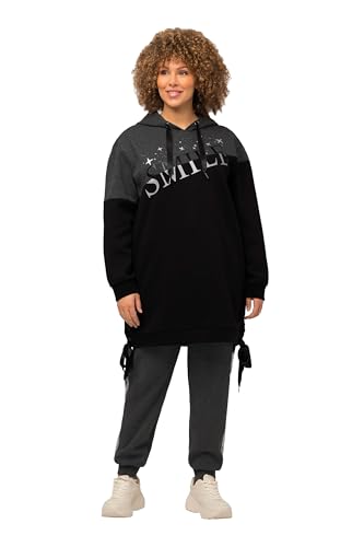 Ulla popken dam lång-sweat satinband snörning smile, delad sweatshirt, svart, 42-44 stor