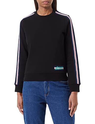 Love Moschino Dam smal passform rund hals lång ärm med randiga band och logotyp sweatshirt, svart, 44