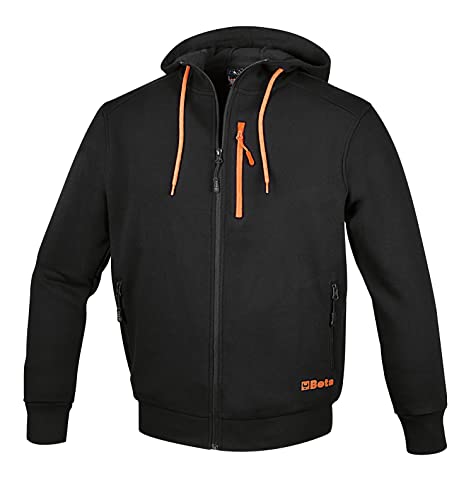 BETA 7665N Work Sweatshirt med lång dragkedja och med huva för män eller Unisex, Flera fickor sammansatt 60% Bomull, 40% Polyester, 280 G, med fast huva med runda justeringsnyckelband, Svart, XL