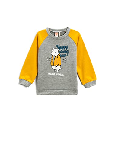 Koton Crew Neck Printed Sweatshirt Lång ärm Unisex Träningsoverall Barn Och Pojkar, Mustard (159), 9-12 mesi