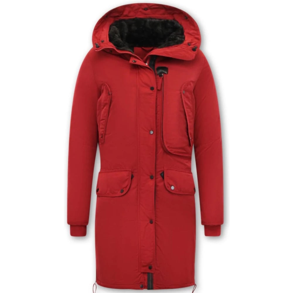 TheBrand, Kappor & Rockar , Dam, XS, Bomull, Dam Vinterjacka Kroppsformande Lång Röd