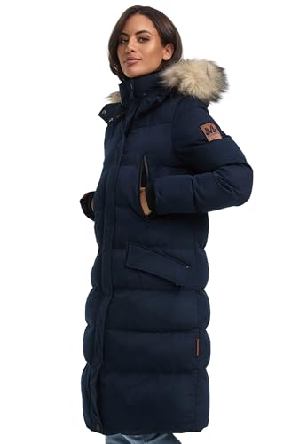 MARIKOO lång dam vinterjacka varm parkas quiltad med huva B890, marinblå, L