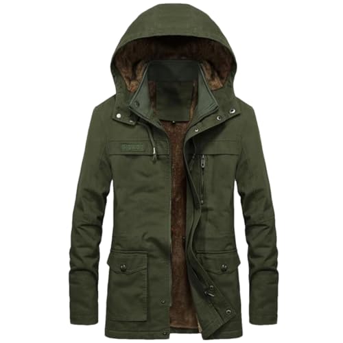 HEYDHSDC Vinterjacka herr vindjacka huva plus velourjackor ytterkläder lång kappa, Armén GN, 3XL