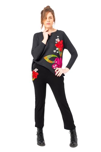 Mamatayoe Minimalistisk. Långa byxor för kvinnor i svart med broderade detaljer för höst och vinter. Bekväma viskosbyxor med elastisk midja., Grå, XXL