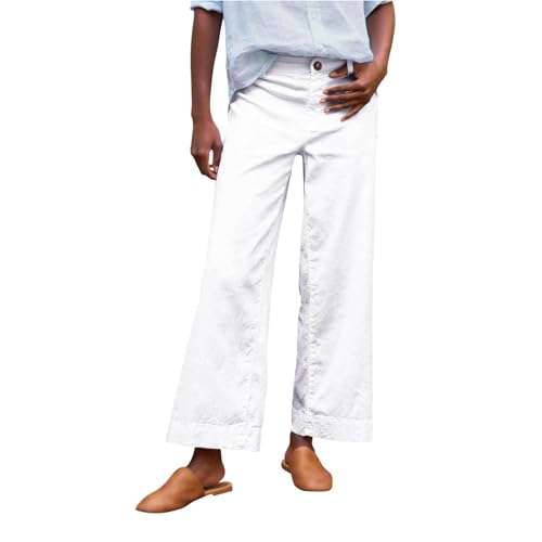 TDEOK dambyxor med och elastisk linning, raka, enfärgade, lediga byxor, lösa långa byxor, yogabyxor, dam 42, Vit, S