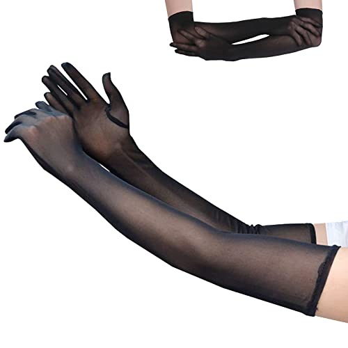 NJDBBZIJS Långa Handskar Kvinnor Tyll Handskar Svart Kväll Konstverk Tillverkad Av Genomskinliga För Verk, Halloween, Karneval, Teater, Teater (svart)