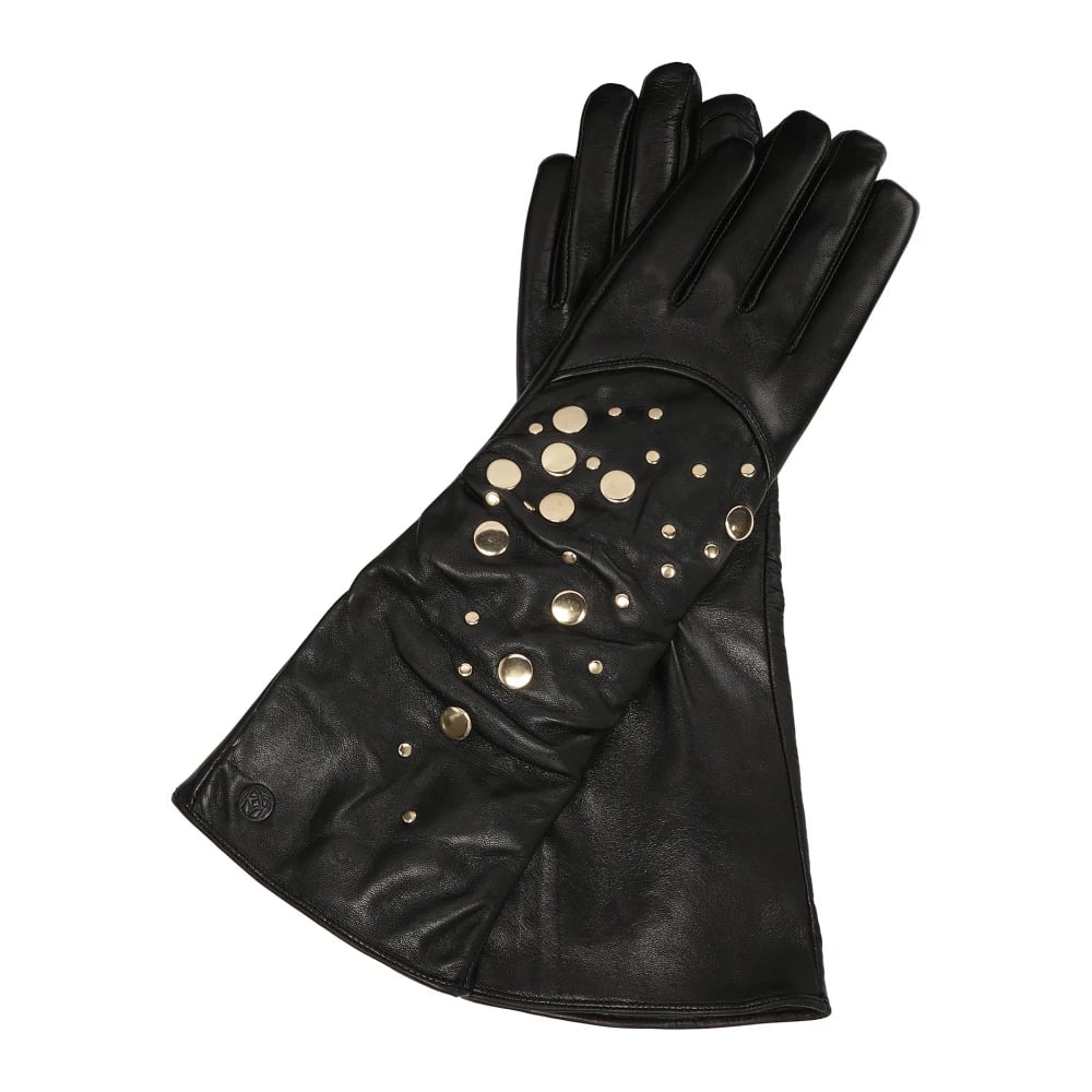 Kazar, Accessoarer , Dam, M, Läder, Långa svarta handskar dekorerade med guld nitar