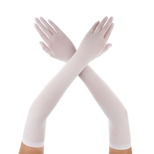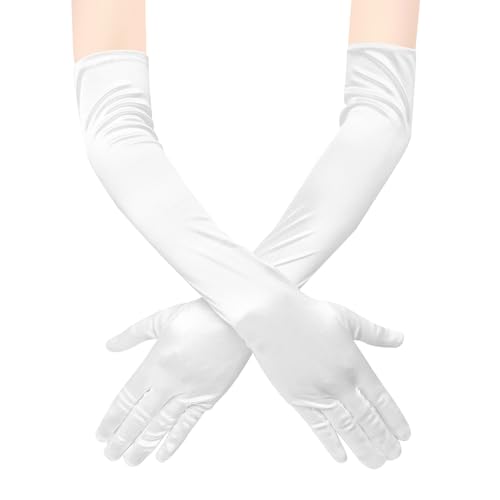ZTVOWTO Långa handskar för kvinnor, stretchiga armbågs-satinhandskar, aftonhandskar för kostymer, opera, brudfest och bröllop, Vitt, one size