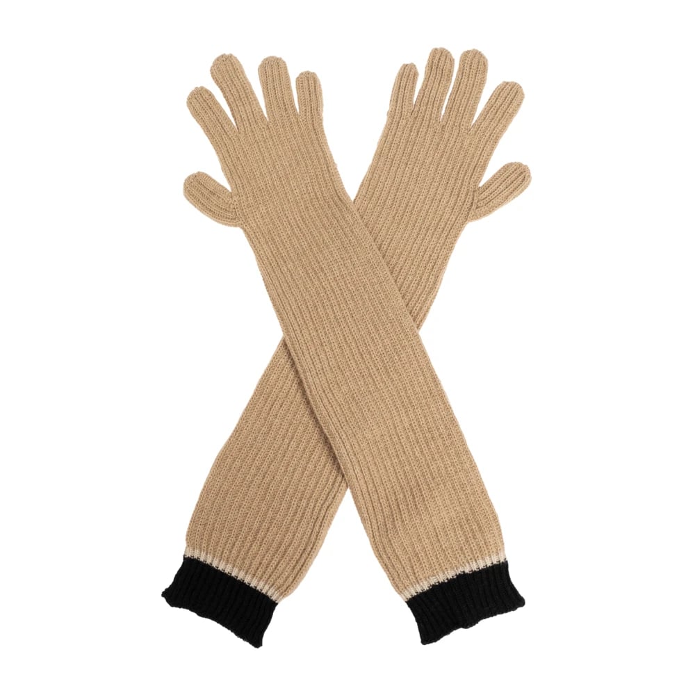 Moschino, Accessoarer , Dam, ONE Size, Kashmir, Ribbade Långa Handskar Beige Logo