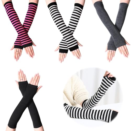 EUDUQ dam långa fingerlösa handskar, 6 par armvärmare kvinnor, randig stickad armvärmare för flickor, långärmad vantar för höst vinter, flerfärgad, ordinary