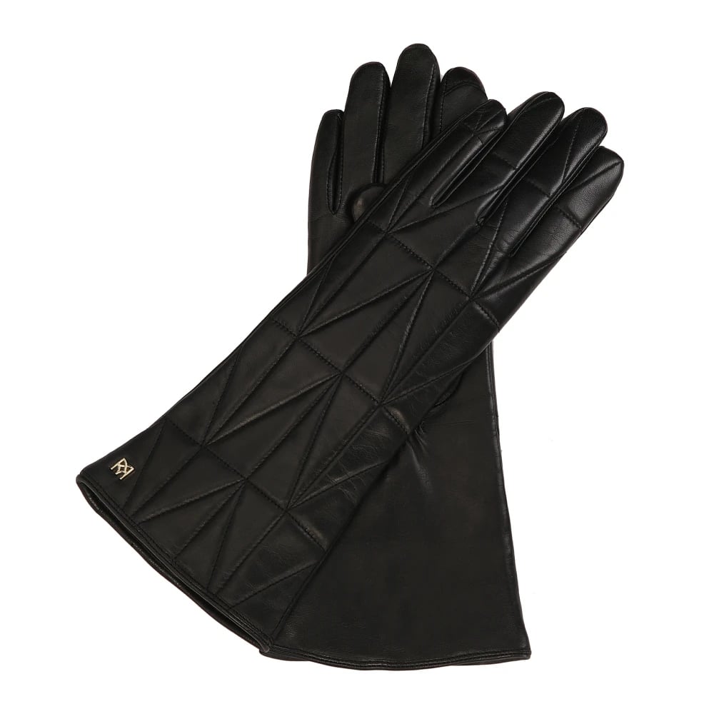 Kazar, Accessoarer , Dam, M, Läder, Långa svarta handskar med geometriskt mönsterstygn
