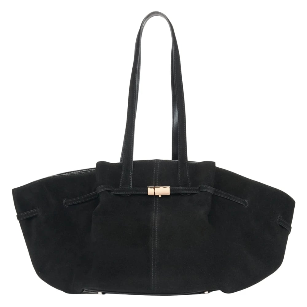 Kazar Studio, Väskor , Dam, ONE Size, Mocka, Kazar Studio Svarta axelremsväskor i mocka med långa handtag