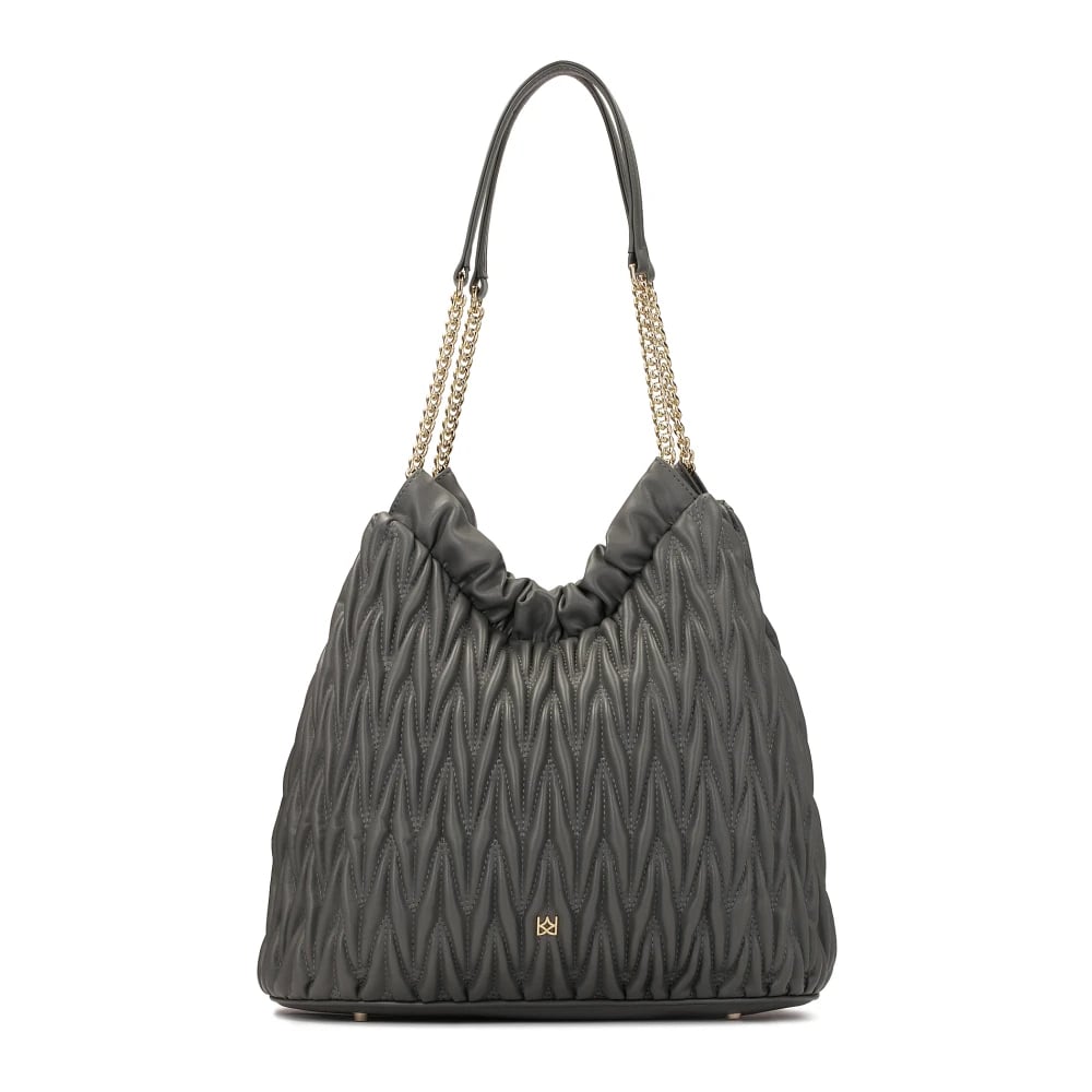 Kazar, Väskor , Dam, ONE Size, Läder, Grå vadderad handväska med långa handtag