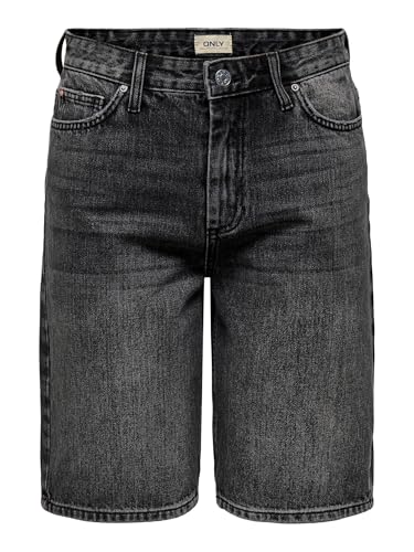 ONLY långa jeansshorts för kvinnor med hög midja och normal passform, Tvättad svart, L