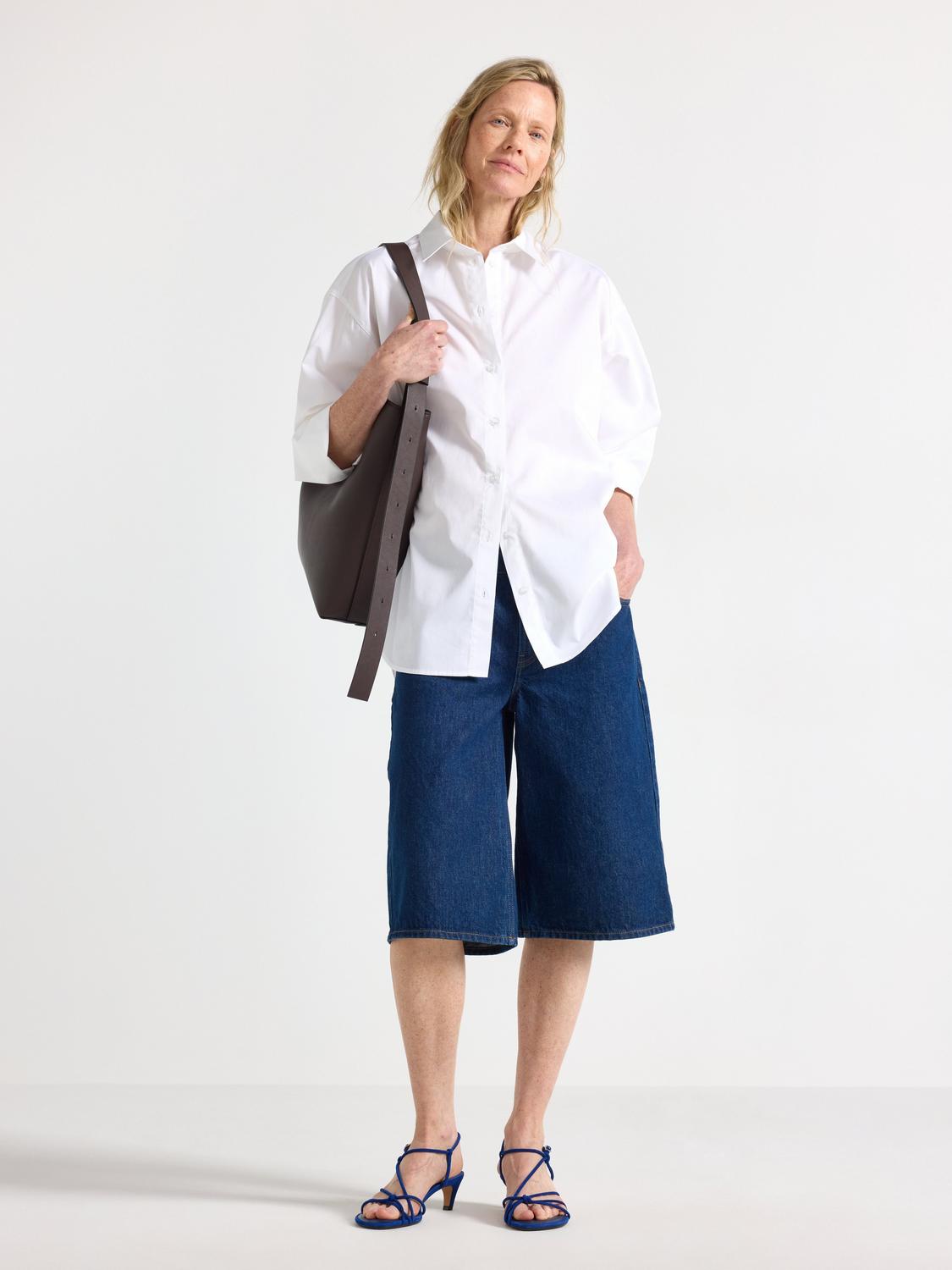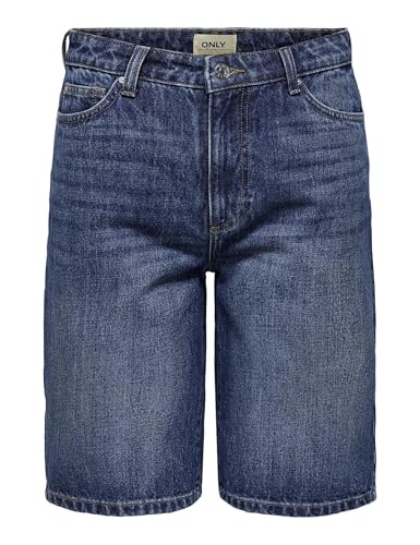 ONLY långa jeansshorts för kvinnor med hög midja och normal passform, Mörkblå denim, 3XL