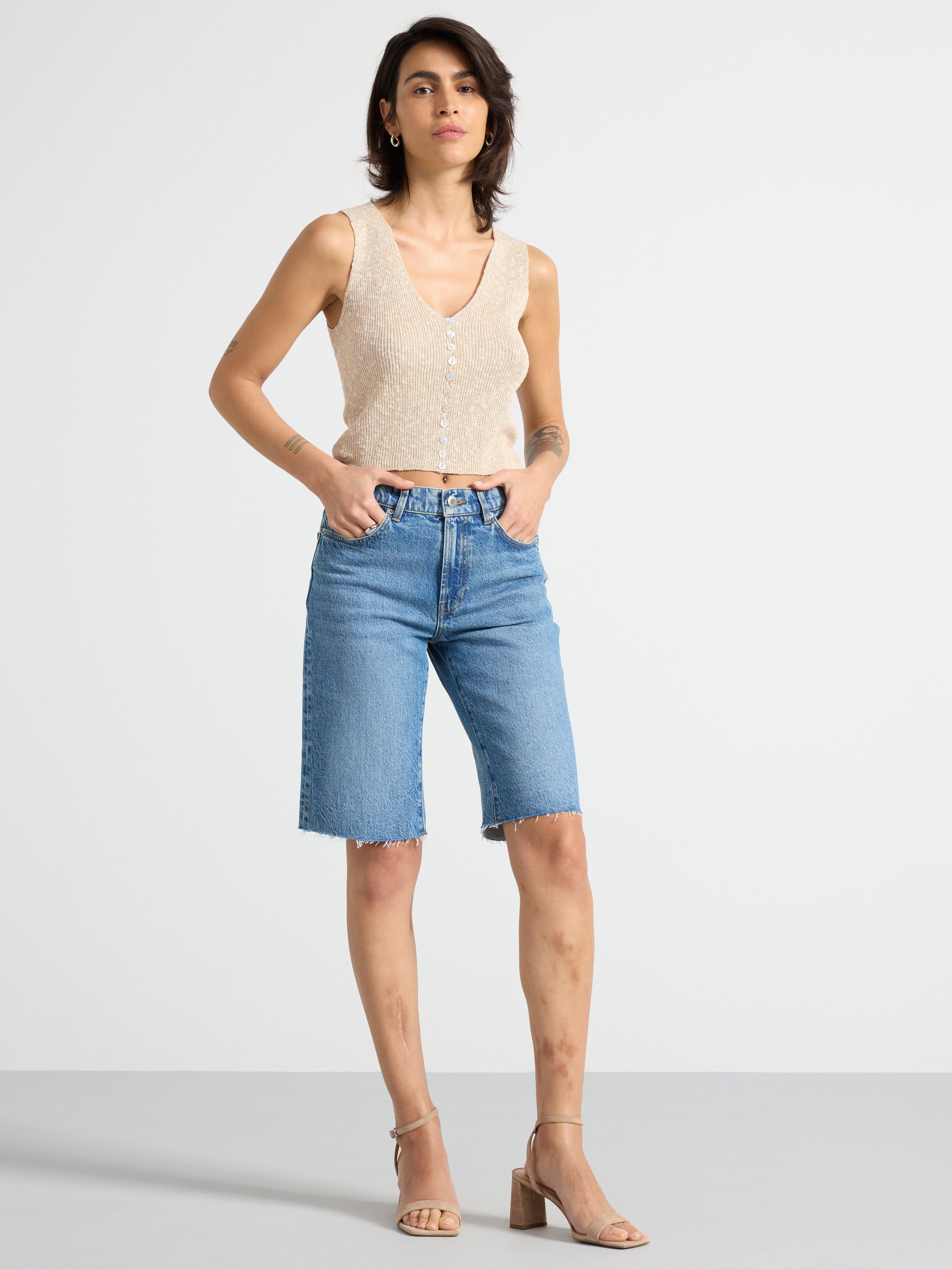 ONLY långa jeansshorts för kvinnor med hög midja och normal passform, Ljusgrå denim, M