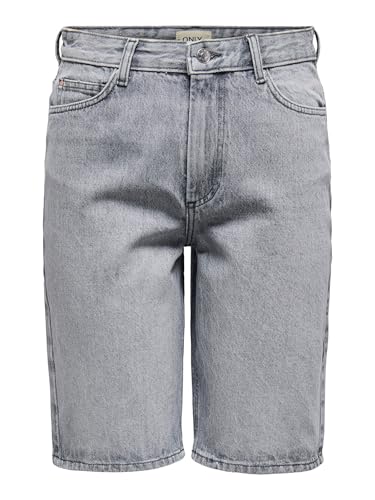 ONLY långa jeansshorts för kvinnor med hög midja och normal passform, Ljusgrå denim, S