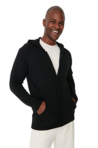 Trendyol herr rak långa ärmar smal passform kofta, svart, L