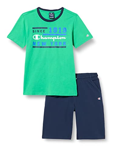 Champion Legacy Graphic Shop S/S T-shirt och långa shorts kostym barn och pojkar, (Grön/blå marin), 15-16 ans