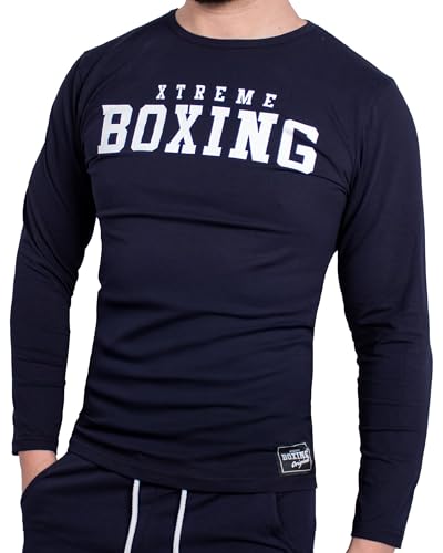 XTREME BOXING - Herr-T-shirt i bomull med långa ärmar, sporttröja för träning, gym och fritid, rund hals, matchas med shorts, XM800BIS (Blå, S)