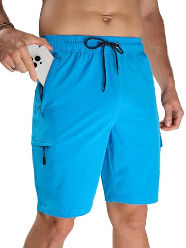 Arcweg badbyxor herr långa snabbtorkande badshorts utan foder sportbyxor fritid shorts herr simbyxor med dragkedja S–XXL, Påfågelsblå, M