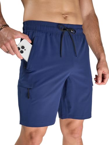 Arcweg badbyxor herr långa snabbtorkande badshorts utan foder sportbyxor fritid shorts herr simbyxor med dragkedja S–XXL, Marinblå, XL