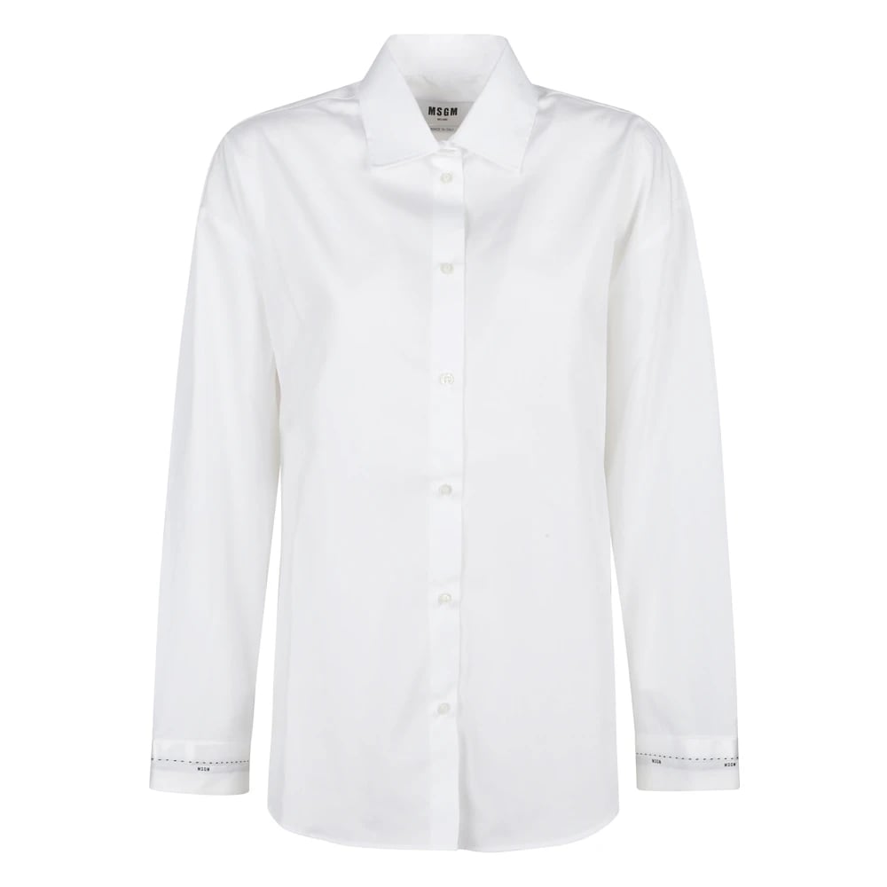 Msgm, Blusar & Skjortor , Dam, XS, Vit Skjorta med Långa ärmar och Logodetaljer